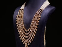 This year, design is about personality. Expect to see layered Polki necklaces, fusion chokers with emerald accents, and asymmetrical designs inspired by global couture. Dual-tone gold, delicate pastel enamelling, and modular pieces that transition from day to night are taking center stage.
