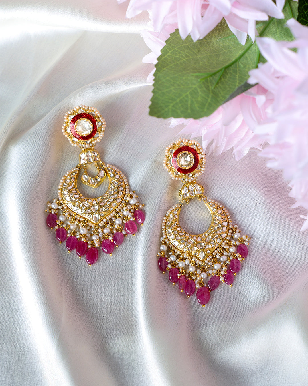 Polki earrings, handcrafted with natural uncut diamonds.