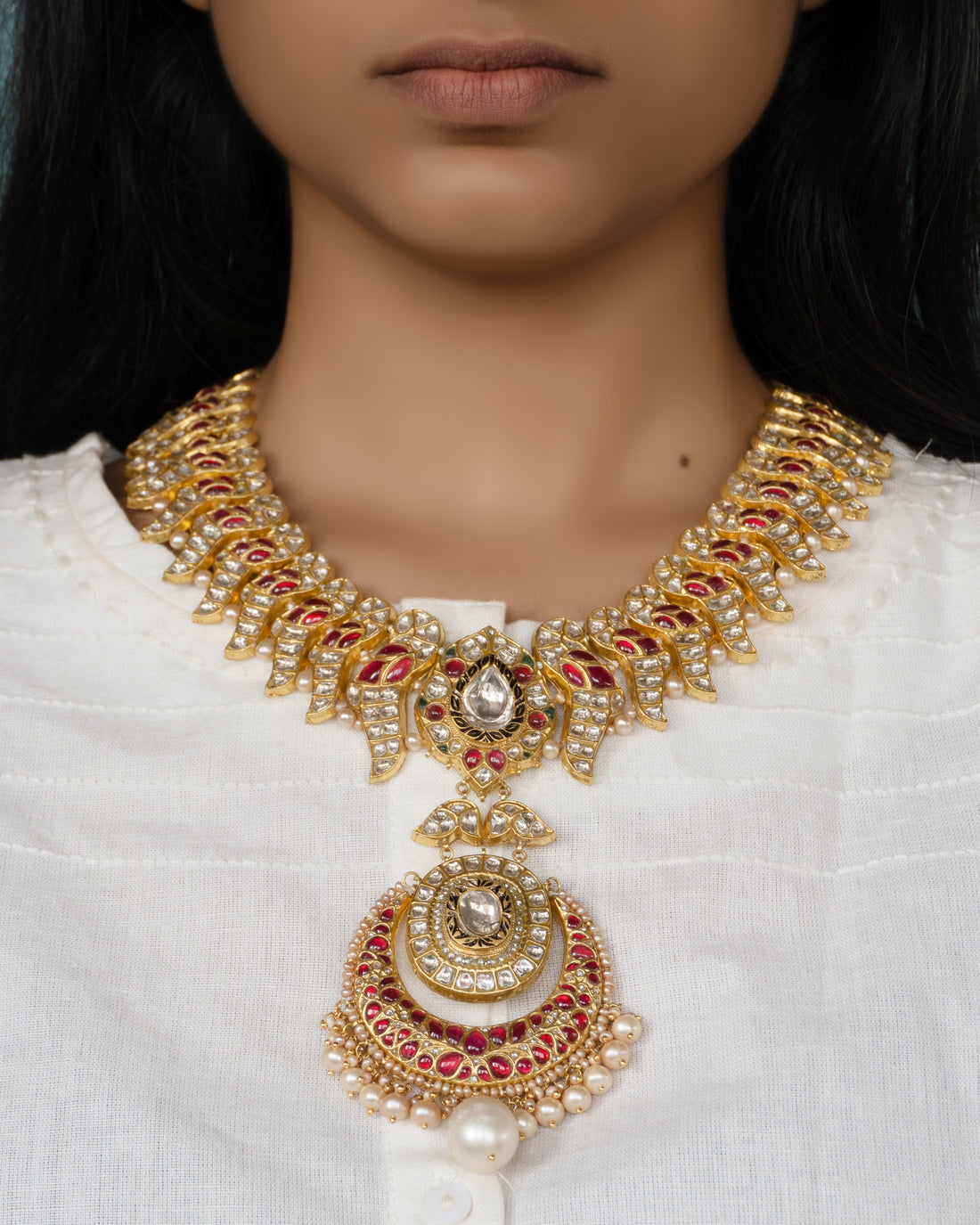Wearing bridal gold jewellery is a celebration of tradition and elegance, perfect for your special day! Our collection features a stunning array of handcrafted pieces that reflect the rich heritage of Indian jewellery design. Tyaani jewellery is made from certified gold and adorned with exquisite natural uncut diamonds and colorful gemstones, ensuring you look radiant as you say "I do." Visit our wedding collection today to find the perfect pieces that will make your wedding unforgettable!