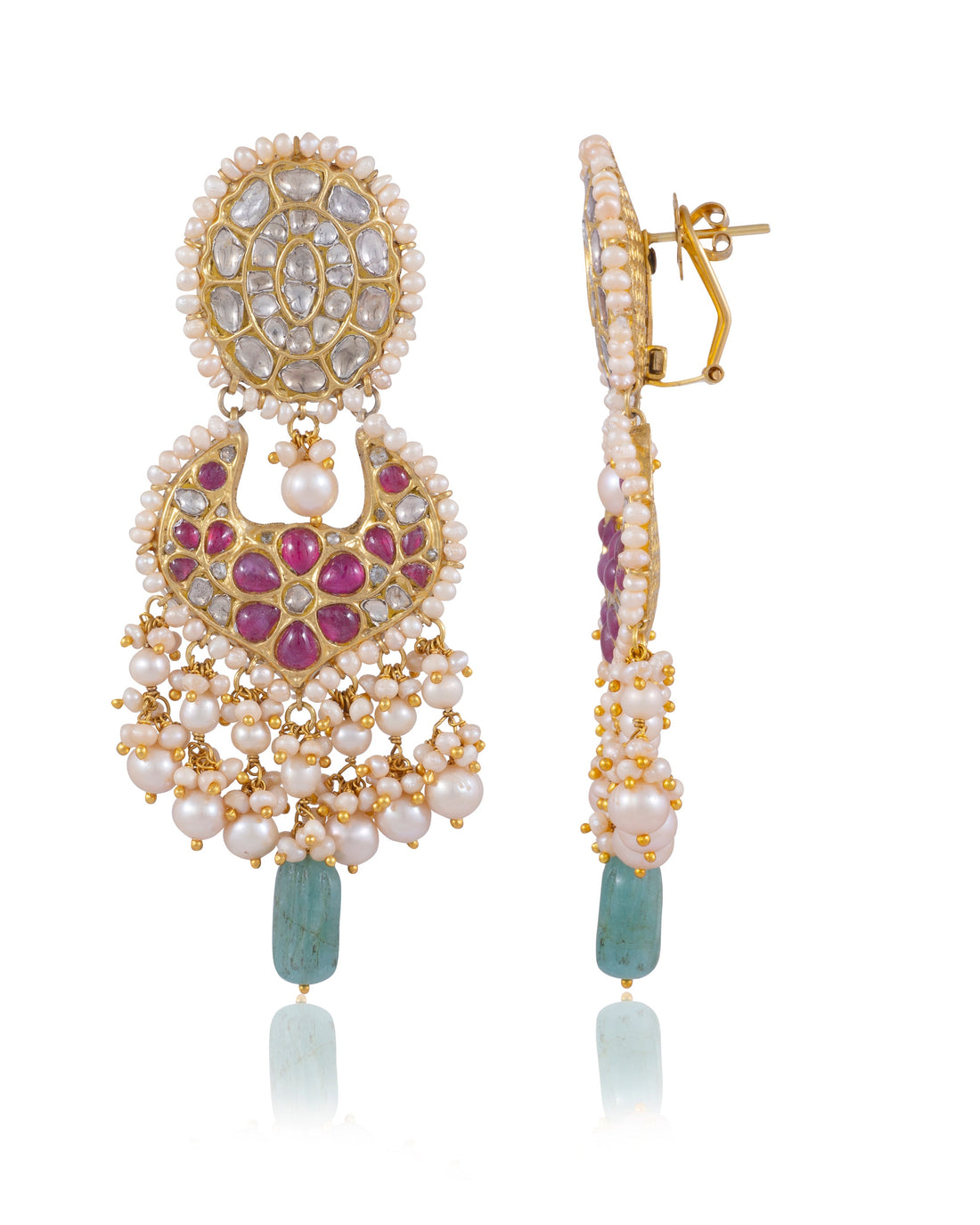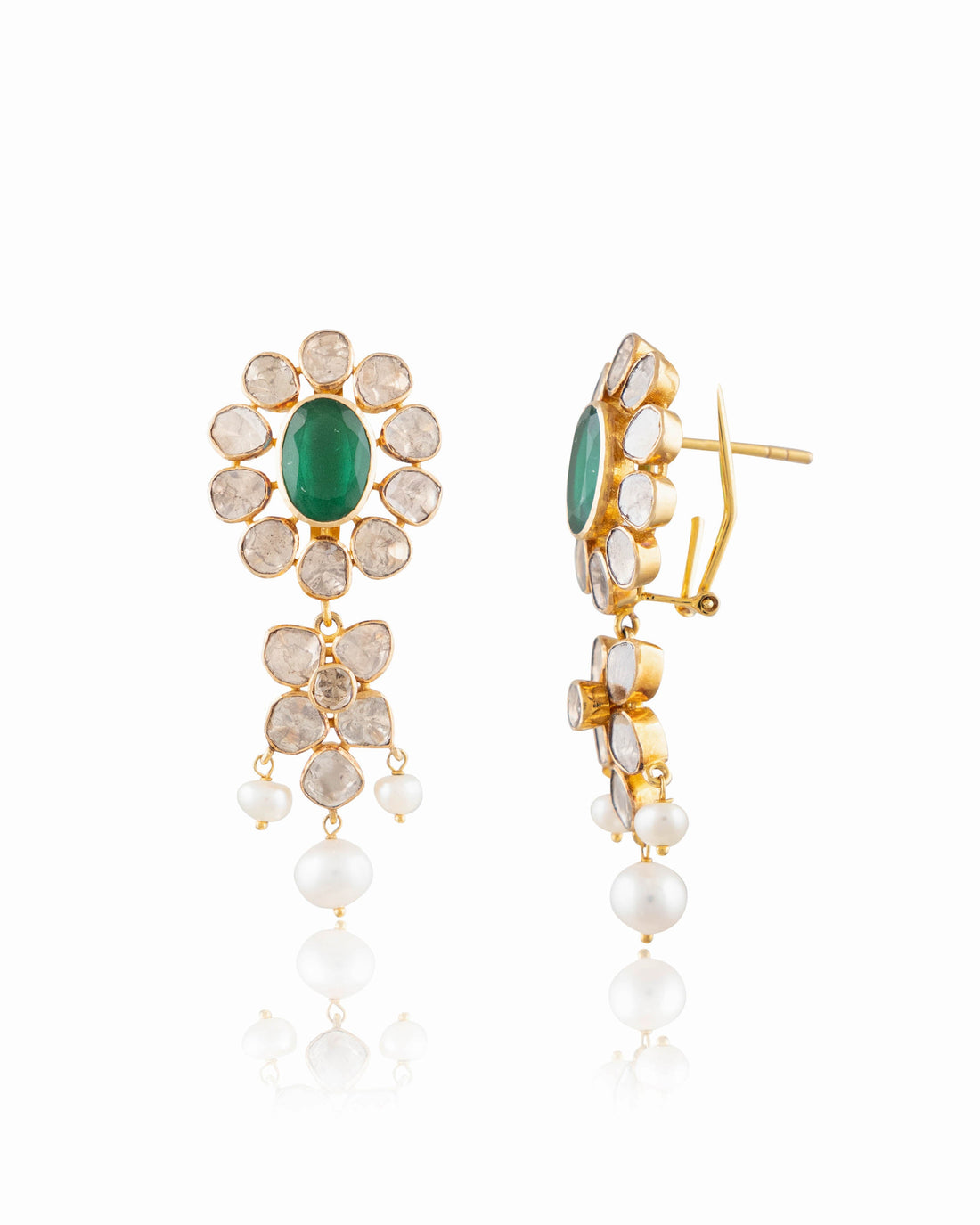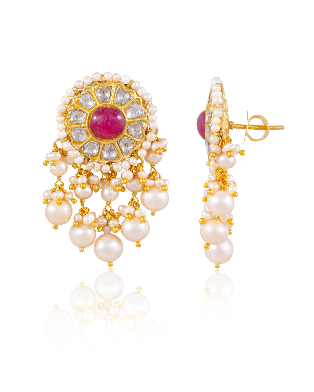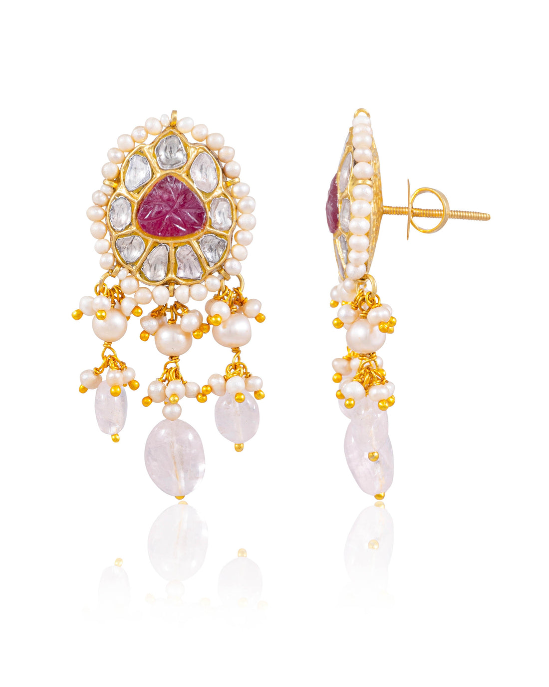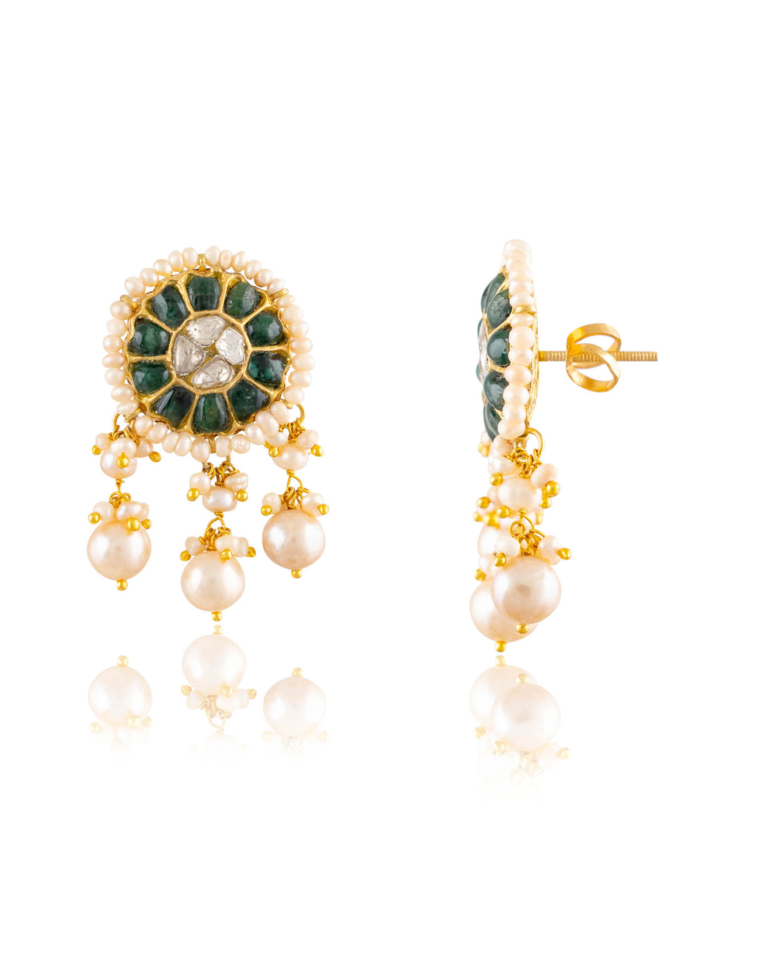 Each pair, from Polki Diamond Earrings to Polki Gold Earrings and charming Polki Tops, is a testament to our hardworking craftsmen. Our Polki Earrings stand out with their mesmerizing design, embedding the allure of Polki in every detail. Ready for immediate dispatch, these earrings promise to bring a touch of sophistication and cultural richness to your attire, elevating your look.