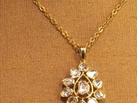 Description : Crafted in 18kt gold with natural polki diamonds and gemstones. Certified jewellery with lifetime buyback/exchange * (T&C) Chain Sold Seperately