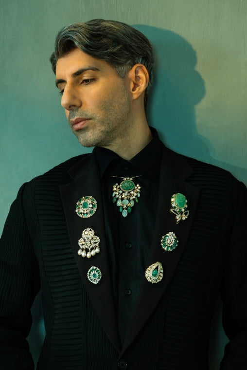 In the finer details lies the true measure of style.In this exclusive curation, Jim Sarbh embodies the new language of men’s jewellery through brooches crafted in eternal shades of emeralds, natural-cut and uncut diamonds, and luminous pearls. Each piece reflects refined power dressing, timeless in its appeal, rooted in heritage craftsmanship, and reimagined for the modern man.