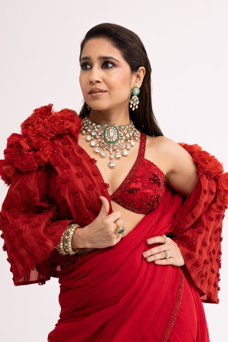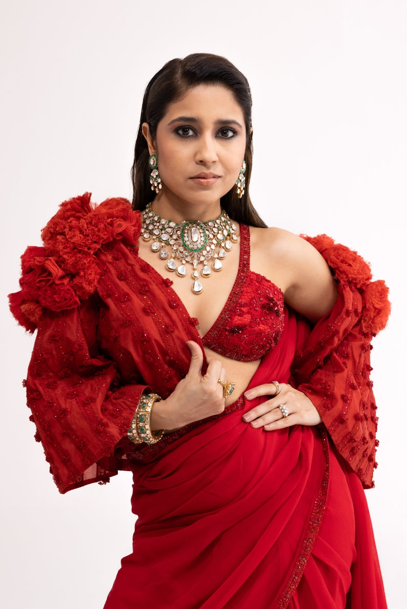 Craft rises to meet the wearer in Shweta Tripathi’s curation. The layered rubies become a part of her, revealing depth and detail with every movement. Holding a balance of tradition and modern refinement, fine jewellery moves beyond the idea of finer things in Tyaani Jewellery.