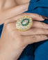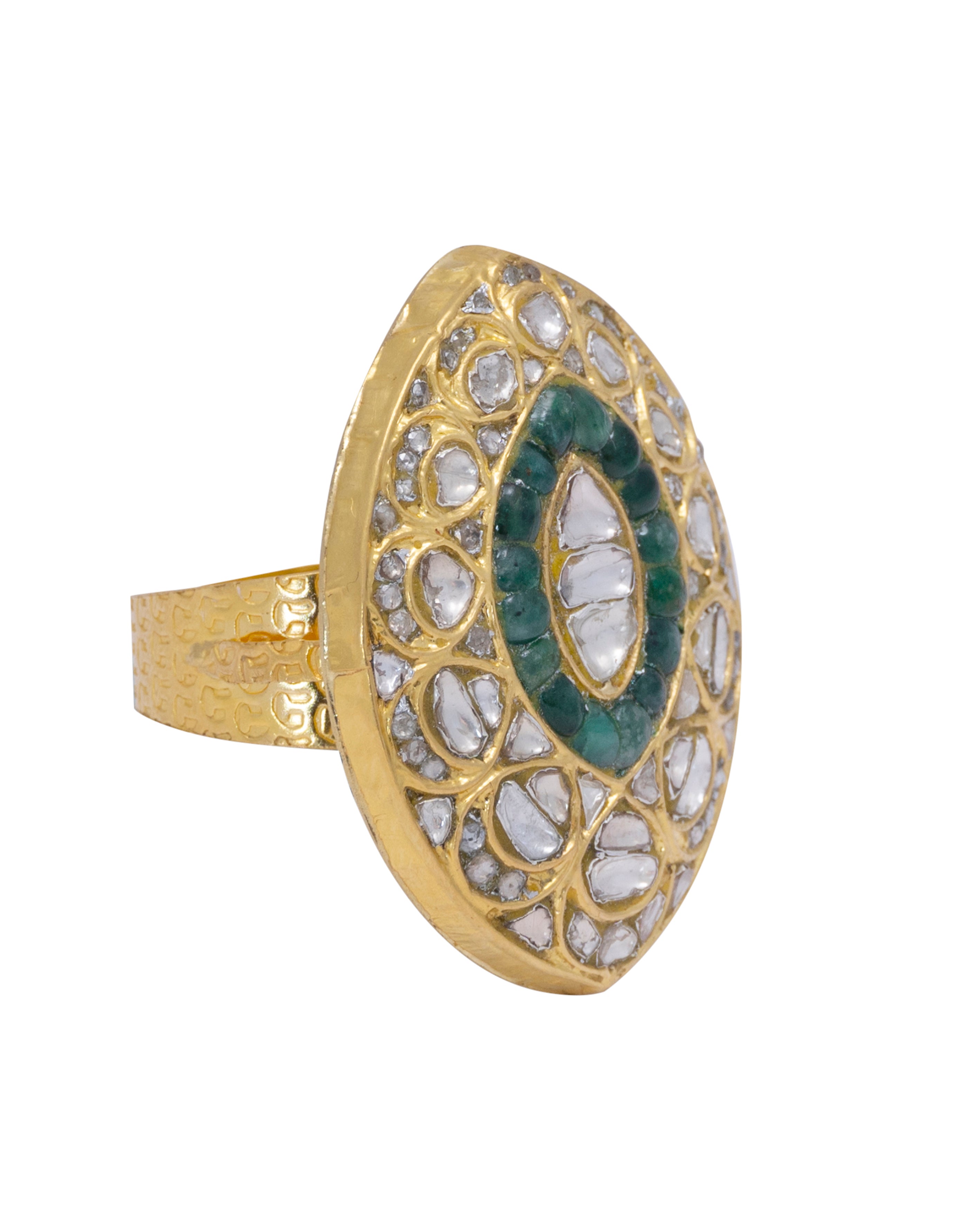 Description : Crafted in 22kt gold with natural polki diamonds and gemstones. Certified jewellery with lifetime buyback/exchange * (T&C)